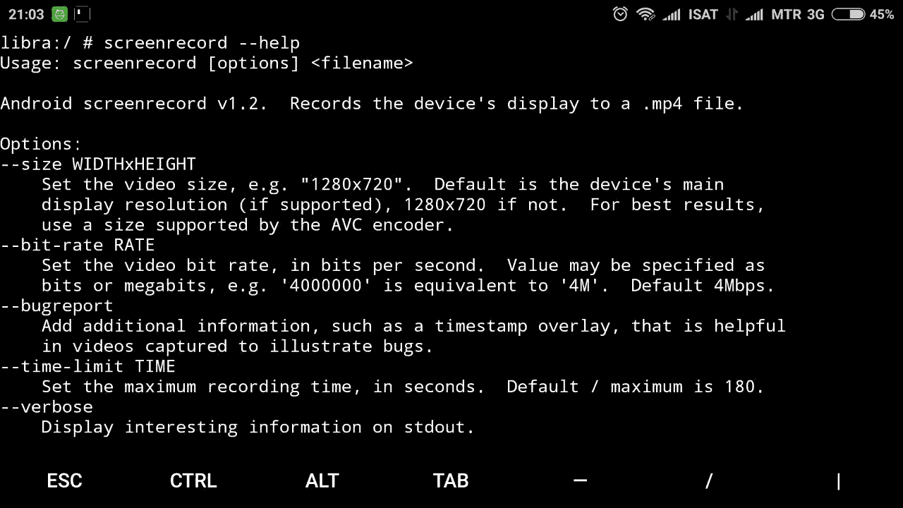 Jika memang Anda seperti halnya saya, enggan untuk memasang piranti lunak tambahan untuk merekam tampilan layar, memiliki hape Android yang telah di-root dan bersistem operasi lebih kini dari KitKat, di bawah ini adalah cara untuk merekam tampilan layar dengan menggunakan piranti lunak screenrecord yang dapat Anda akses melalui terminal emulator di Android atau adb di komputer.